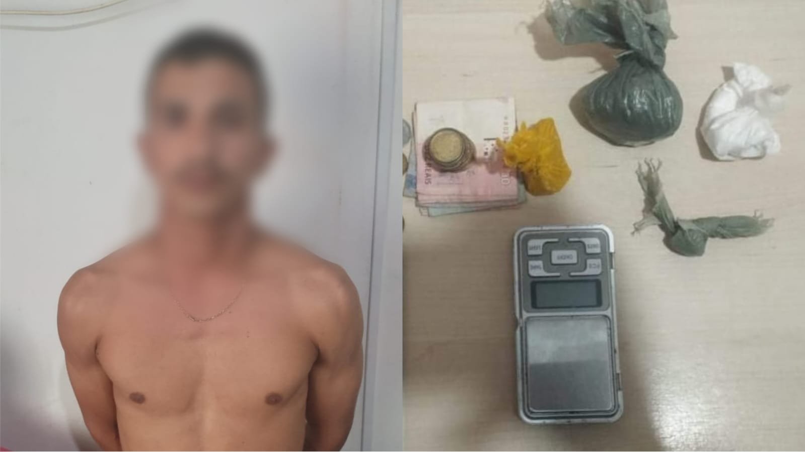 Os elementos ao ver a guarnição se aproximando fugiram, mas, Railson foi alcançado e preso. Durante revista pessoal foi encontrado uma porção (bucha ou peteca) de aproximadamente 1,5 gramas análoga à maconha, embalagem plástica com uma pedra de aproximadamente 18,2 gramas análoga a crack.