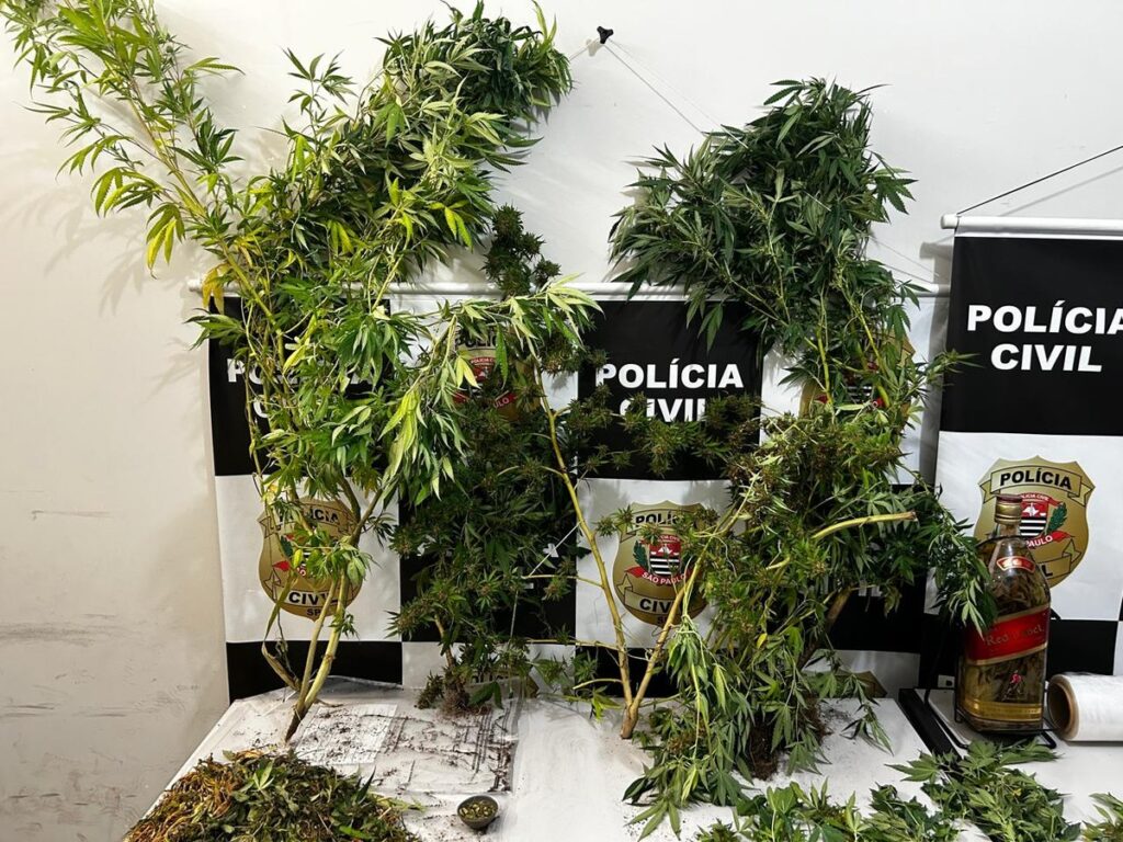 No local, a equipe policial localizou, ainda, um laboratório improvisado para cultivo de maconha, na lavanderia e no terraço do imóvel, com quatro pés grandes da droga e 31 mudas pequenas, além de potes contendo sementes e folhas secas de maconha, 10 porções da droga prontas para a venda, um vidro de “cachaça de maconha”, balança e materiais para embalagem.
