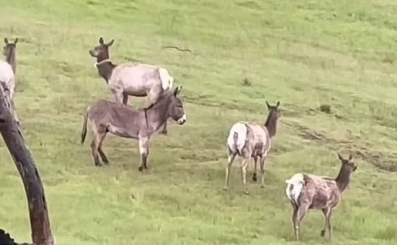 As imagens do burro em meio aos veados foram gravadas por Fennel e compartilhadas no perfil dele em uma rede social.