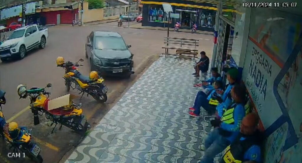 Imagens mostram o momento em que aconteceu o acidente. A condutora seguia na travessa Quinze de Agosto no centro do município de Itaituba, no sudoeste do Pará, quando desviou para não acertar um carro, mas acabou perdendo o controle do veículo e atingindo várias motocicletas que estavam estacionadas no ponto dos mototaxistas.