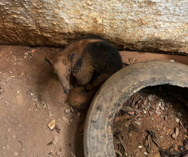 Ao chegar ao local, os bombeiros militares encontraram o animal acuado, tentando se esconder atrás de um pneu. Com cuidado, a equipe utilizou um cambão para realizar a captura do tamanduá-mirim, que foi levado até uma área de mata e solto em seu habitat natural.