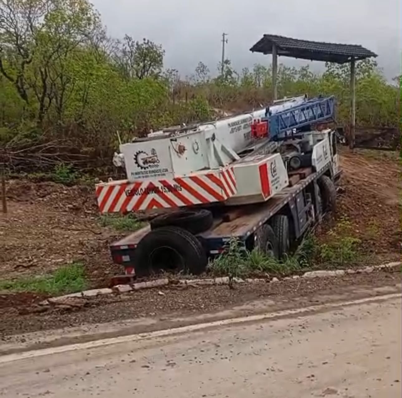 Guindaste enviado para resgate perde controle e cai em barranco na estrada do Manso