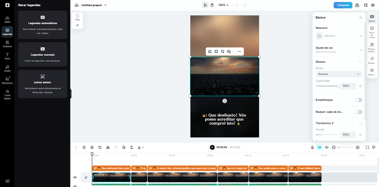 Agora você pode alterar brilho, contraste, filtros e efeitos manualmente. Adicione textos, legendas ou música para enriquecer a experiência visual.